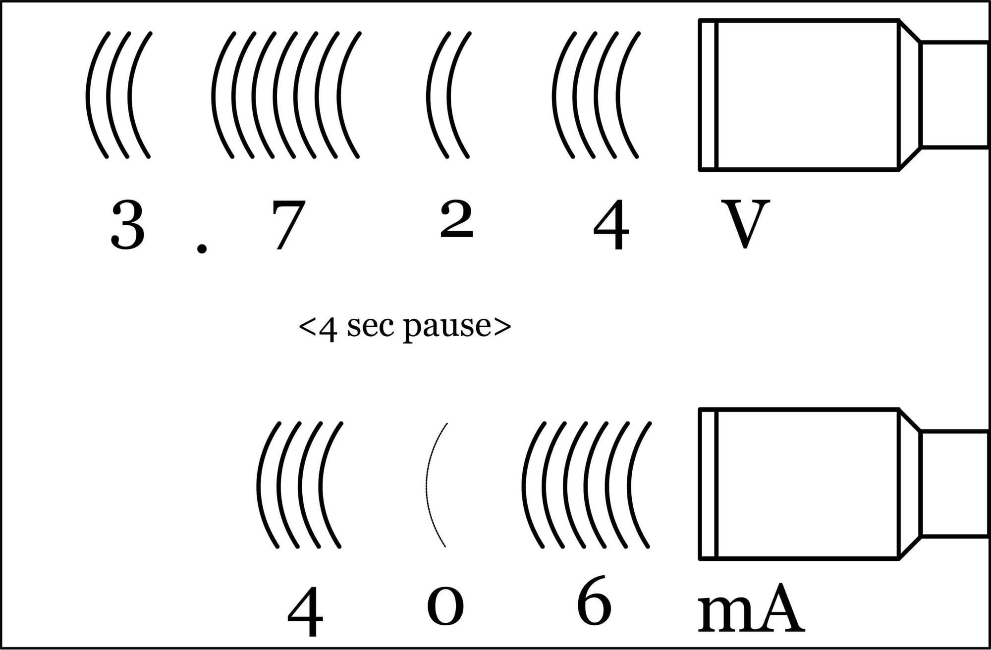 The circuit measures both the battery voltage and LED current, then flashes them out.