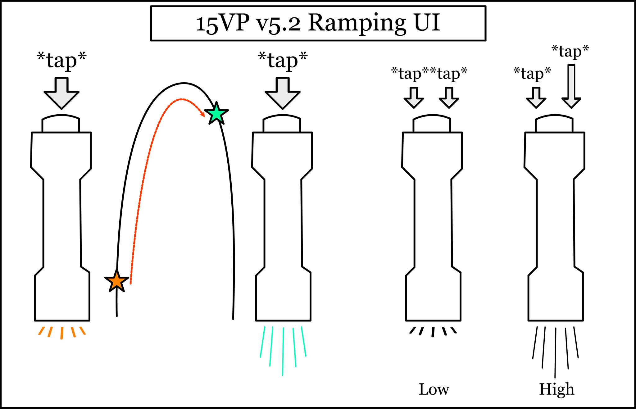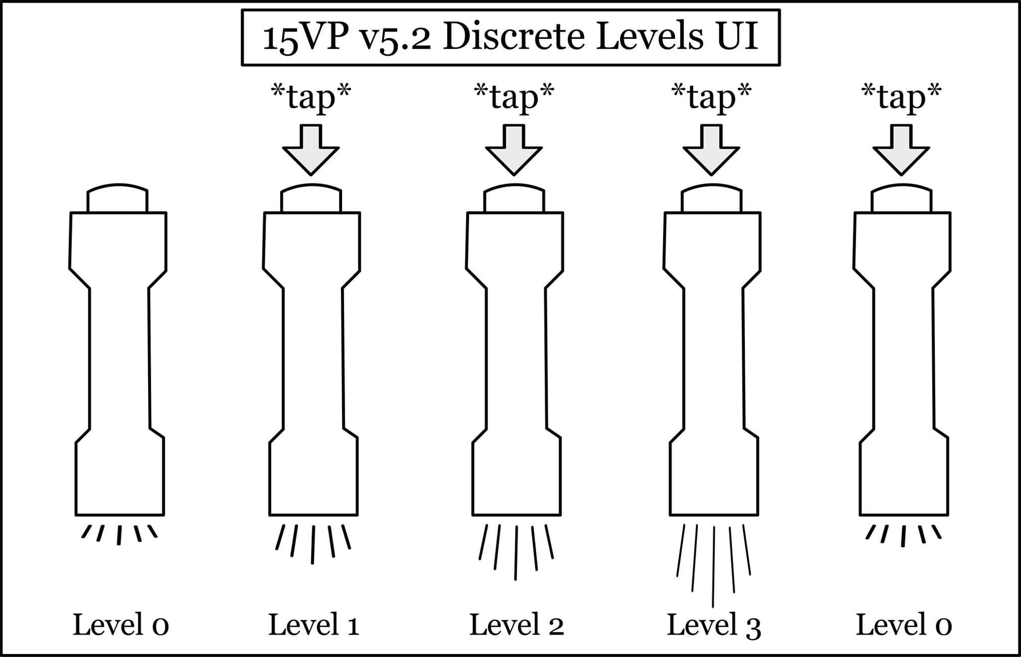 The 15VP v5.2 circuit features two different user interfaces (UI’s). You can switch between them at will. They allow you to control the brightness in different ways.