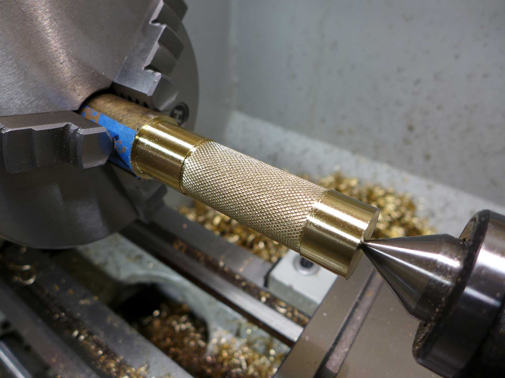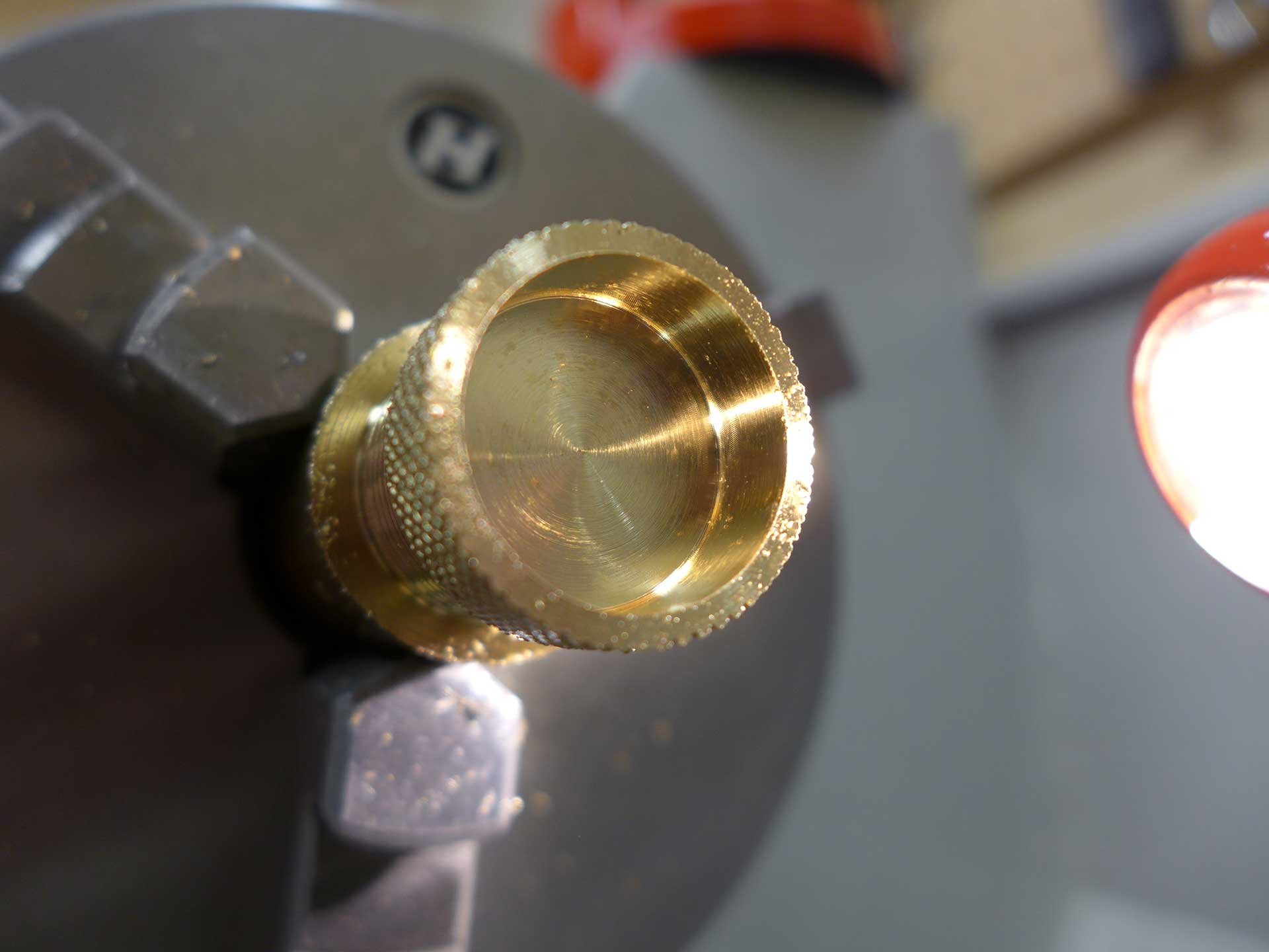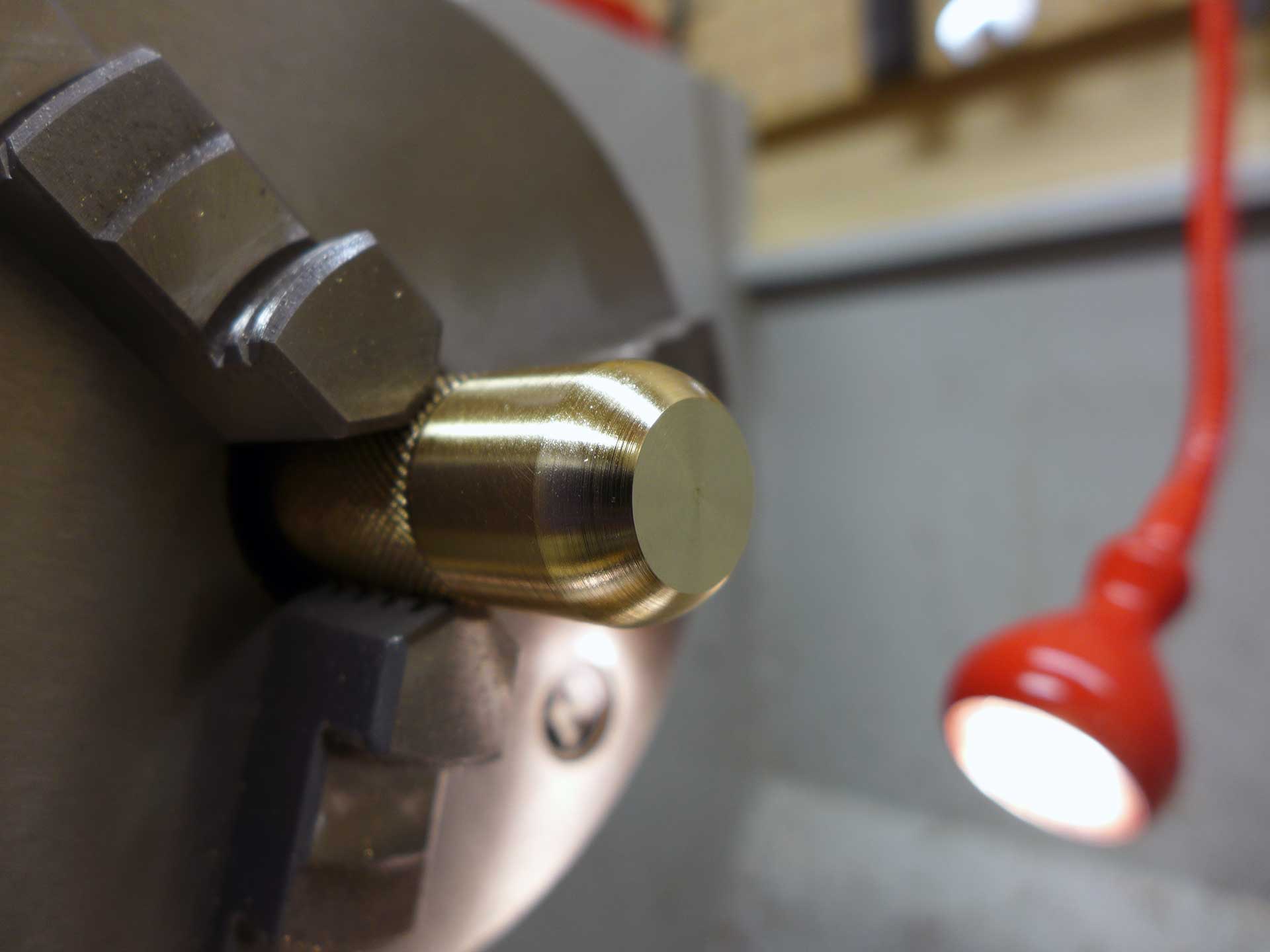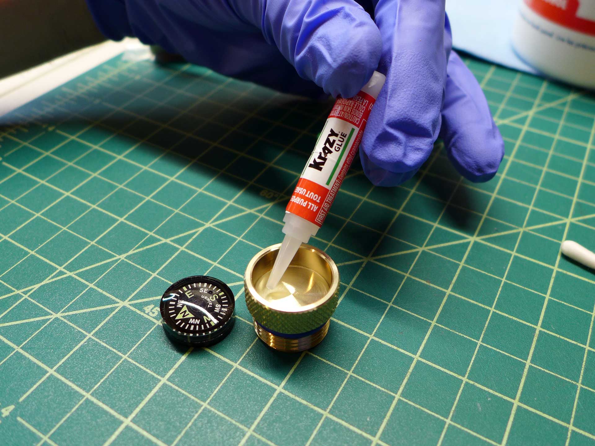 This was a Christmas 2016 gift to my brother-in-law. The material is aluminum bronze (85% copper, 15% aluminum). The compass is a 20mm grade AA button compass. Start-to-finish it took 12.5 hours to complete.