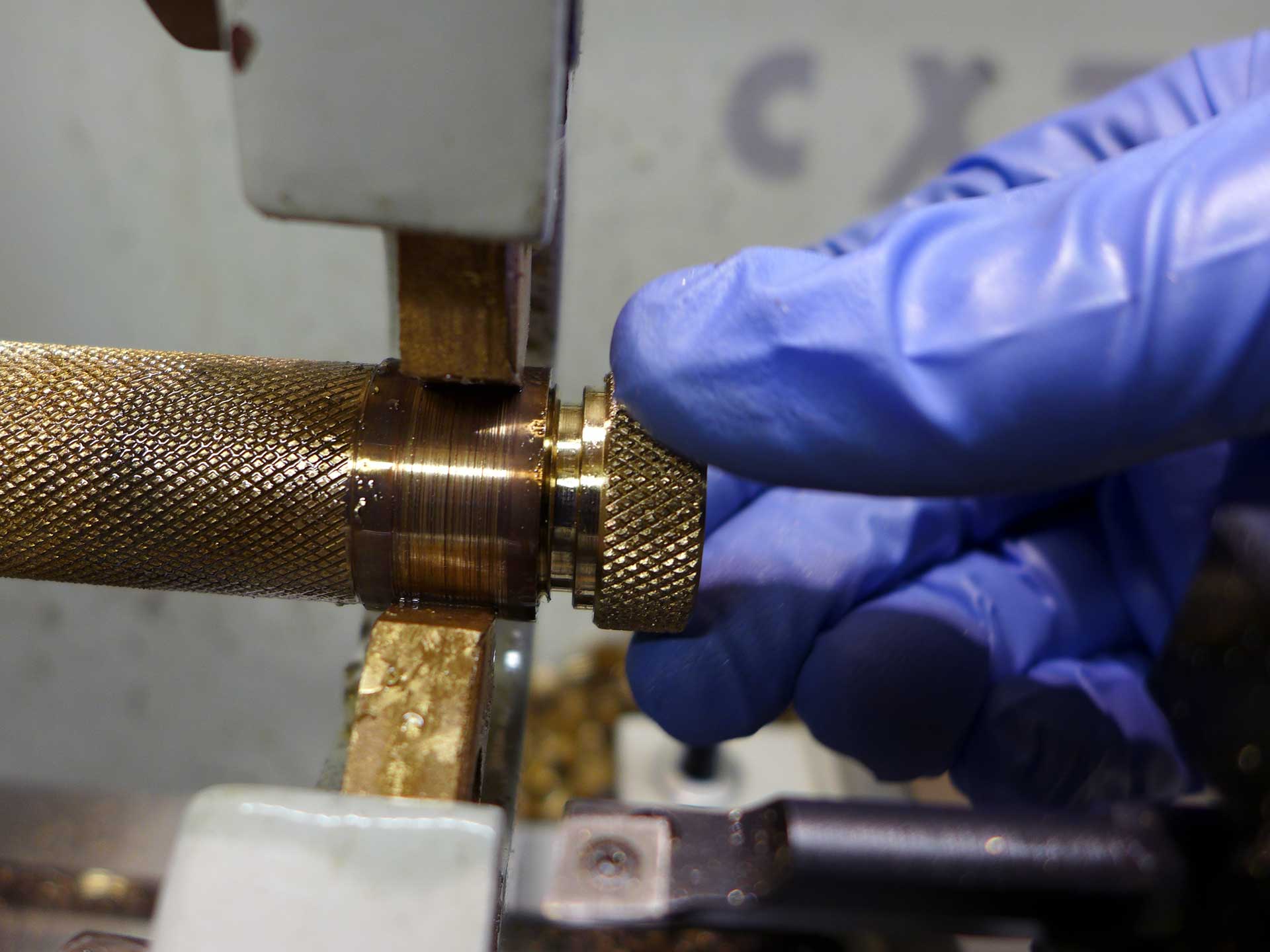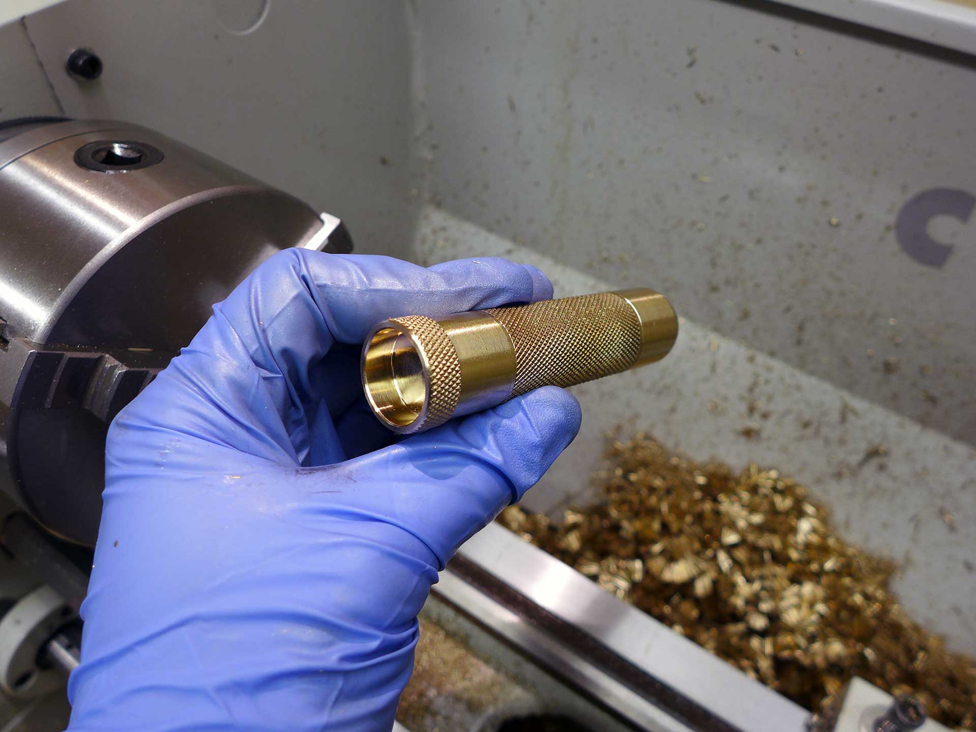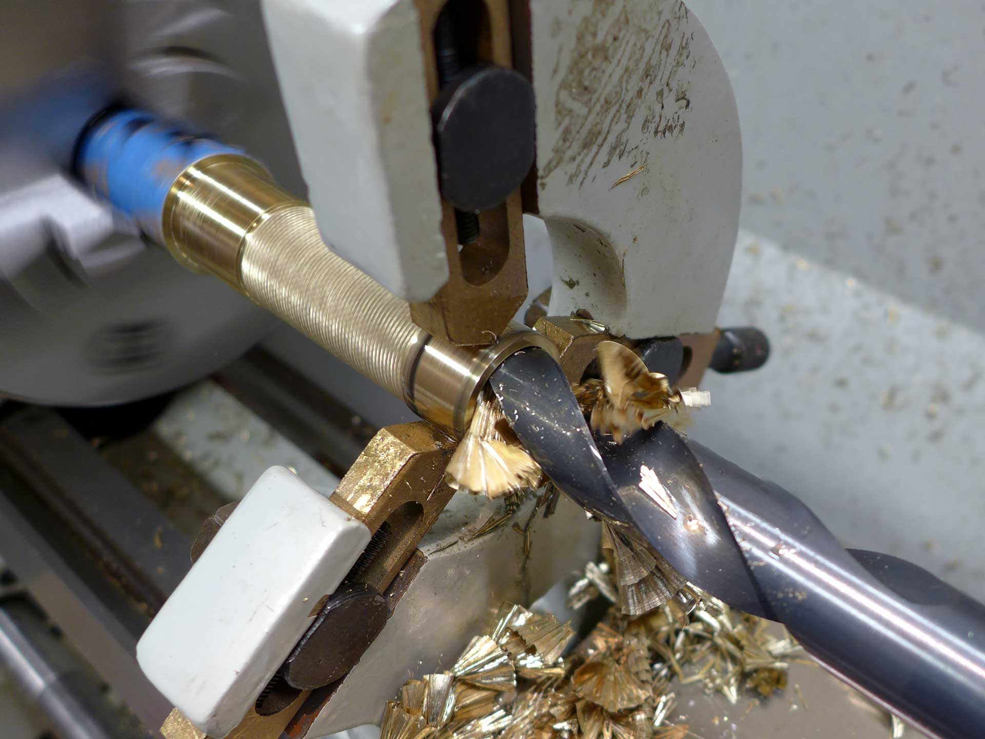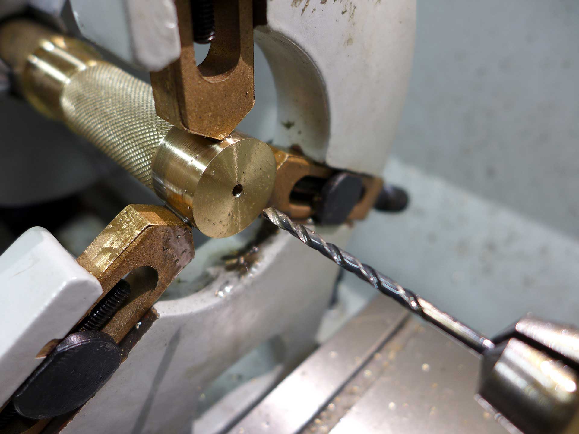 This was a Christmas 2016 gift to my brother-in-law. The material is aluminum bronze (85% copper, 15% aluminum). The compass is a 20mm grade AA button compass. Start-to-finish it took 12.5 hours to complete.